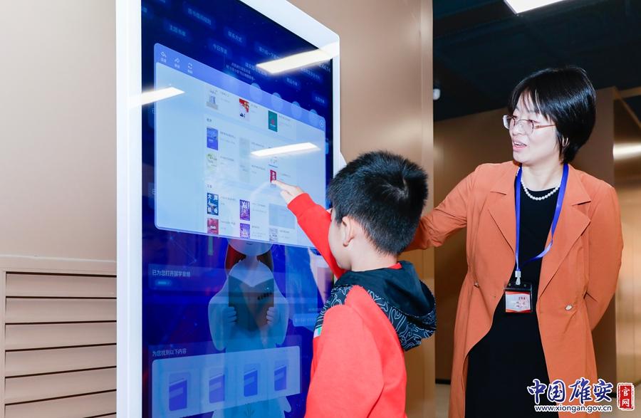 讀者在體驗(yàn)圖書館內(nèi)的智能設(shè)備。中國雄安官網(wǎng)發(fā)