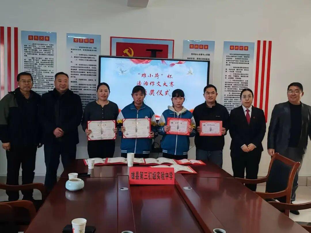 法治的陽光,照耀青春成長之路;文字的力量,承載少年法治夢想。10月24日,隨著“雄小荷”杯法治作文大賽評比結果的出爐,賽事組委會帶著榮譽與成果,相繼走進雄縣第二、第三初級實驗中學、雄縣第三高級中學初中部,為獲獎師生頒獎。