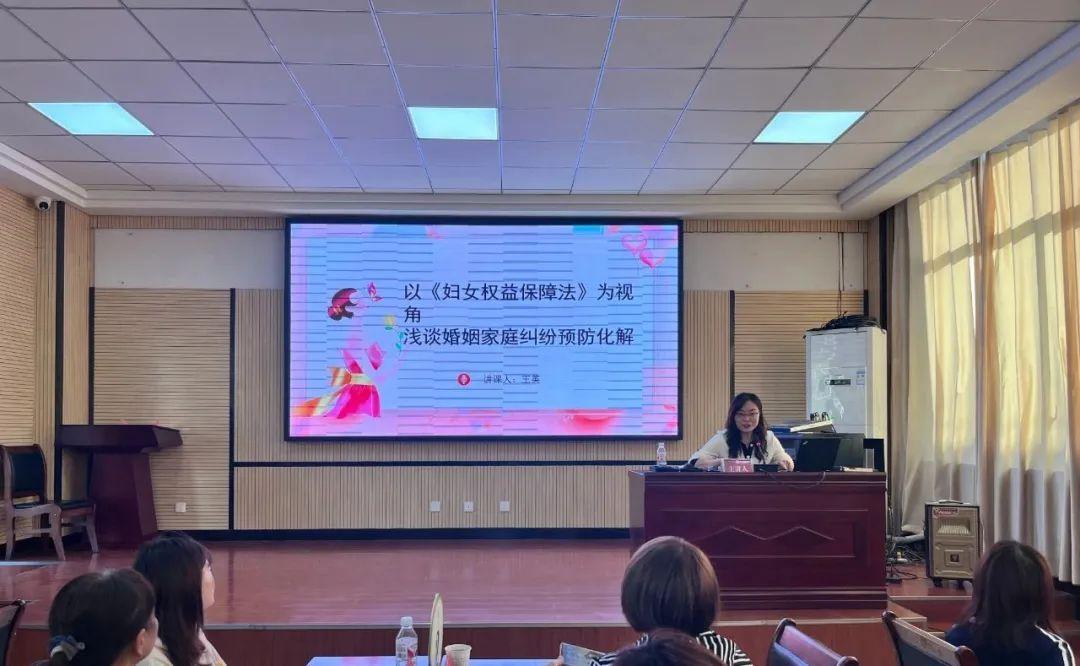 王英以《以〈婦女權(quán)益保障法〉為視角,淺談婚姻家庭糾紛預(yù)防化解》為主題,結(jié)合自身工作經(jīng)驗(yàn)和審判實(shí)踐中的典型案例,用通俗易懂的語(yǔ)言講解婦女權(quán)益保護(hù)相關(guān)法律法規(guī),增強(qiáng)婦聯(lián)干部的法律意識(shí),進(jìn)一步提高婦聯(lián)干部運(yùn)用法治思維和法治方式維護(hù)合法權(quán)益、化解矛盾糾紛的能力和水平。