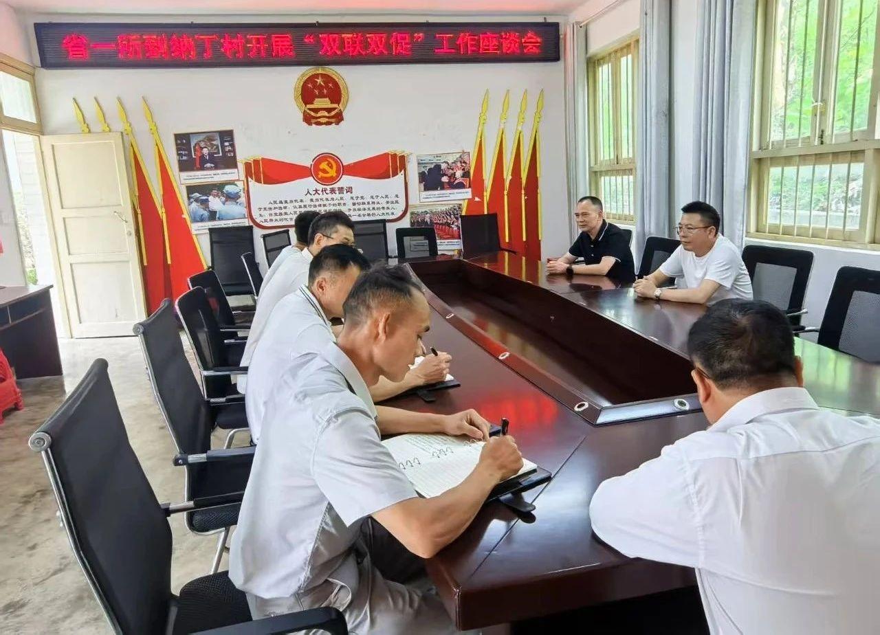 在納丁村,工作組一行與村“兩委”、駐村干部開展“雙聯(lián)雙促”座談交流會,聽取駐村第一書記匯報工作開展情況,仔細詢問目前工作存在的問題和困難,并圍繞黨組織建設(shè)、鄉(xiāng)村建設(shè)現(xiàn)狀以及產(chǎn)業(yè)發(fā)展規(guī)劃等議題展開深入交流。工作組一行對駐村干部進行了政策宣講和指導(dǎo),要求堅持務(wù)求實效,做好群眾身邊突出問題的整治工作,以作風(fēng)建設(shè)新成效鞏固脫貧攻堅成果、全面推進鄉(xiāng)村振興。
