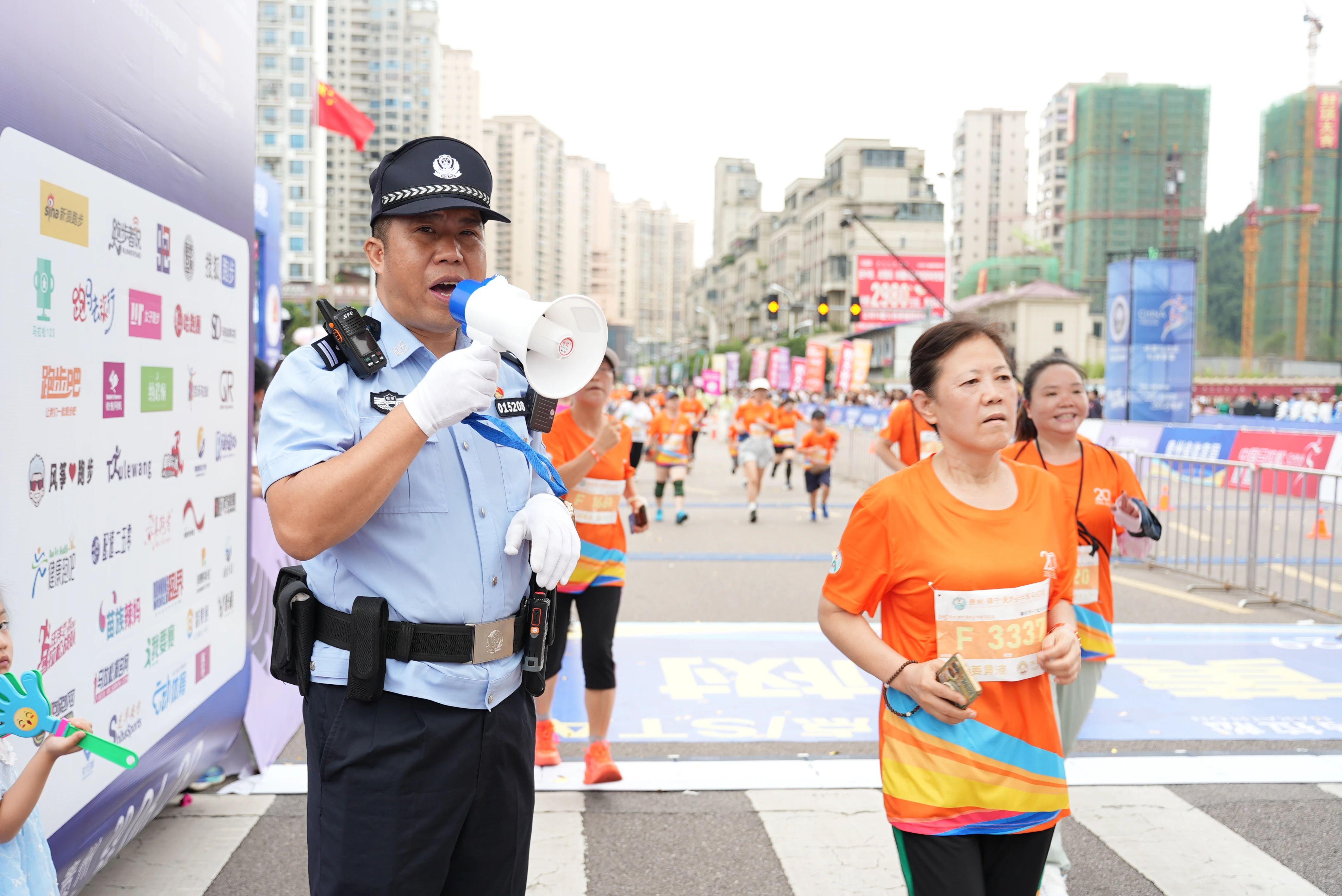 在嚴(yán)格安保的同時,鎮(zhèn)寧公安堅持“服務(wù)+管理”理念,積極為參賽選手和觀賽群眾提供暖心服務(wù),隨時應(yīng)對突發(fā)狀況。在每個點位,執(zhí)勤民輔警以定點值守與流動巡邏相結(jié)合方式,保障參賽選手的跑步路線安全,隨時應(yīng)對參賽人員可能出現(xiàn)的身體狀況和意外受傷等情況。