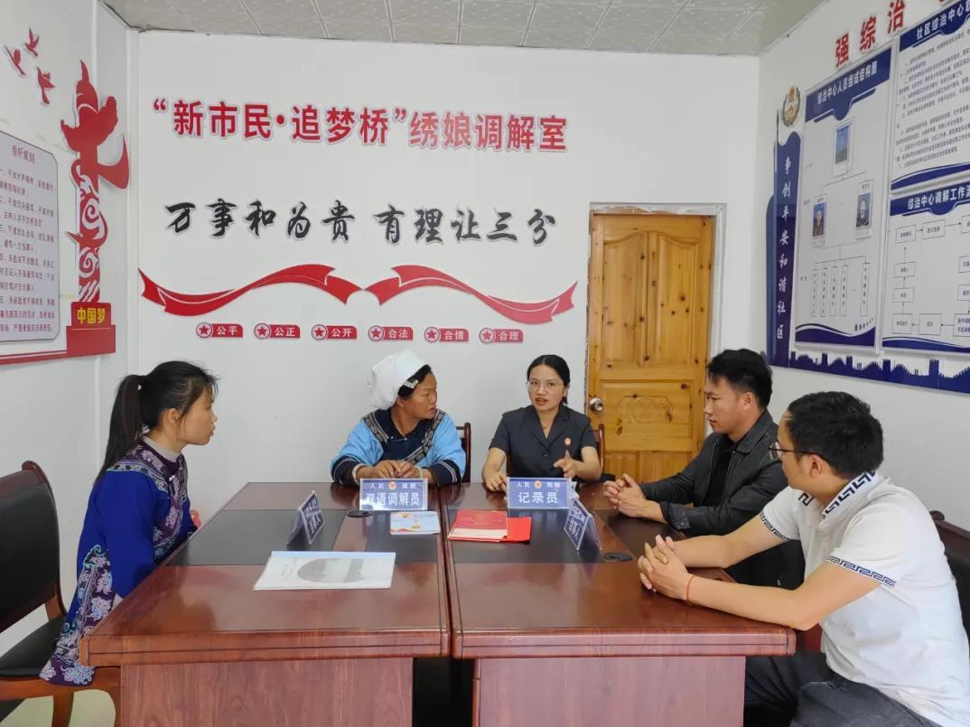 同時(shí),依托非物質(zhì)文化遺產(chǎn)資源,成立“繡娘調(diào)解室”,組建“水鄉(xiāng)巾幗調(diào)解隊(duì)”,以柔性調(diào)解化解家庭矛盾;建立苗族“三長(zhǎng)”(房長(zhǎng)、族長(zhǎng)、村長(zhǎng))與法庭聯(lián)動(dòng)機(jī)制,強(qiáng)化親情紐帶作用;融入布依族民俗文化,打造“堂屋說事”解紛平臺(tái),讓糾紛化解更貼近群眾生活。此外,法院還創(chuàng)新運(yùn)用民族文化元素,創(chuàng)作“離婚勸和歌”“孝道傳承歌”等文藝作品,將民族文化與司法調(diào)解深度融合,累計(jì)化解家事糾紛1495件,實(shí)現(xiàn)法律效果與社會(huì)效果的有機(jī)統(tǒng)一。
