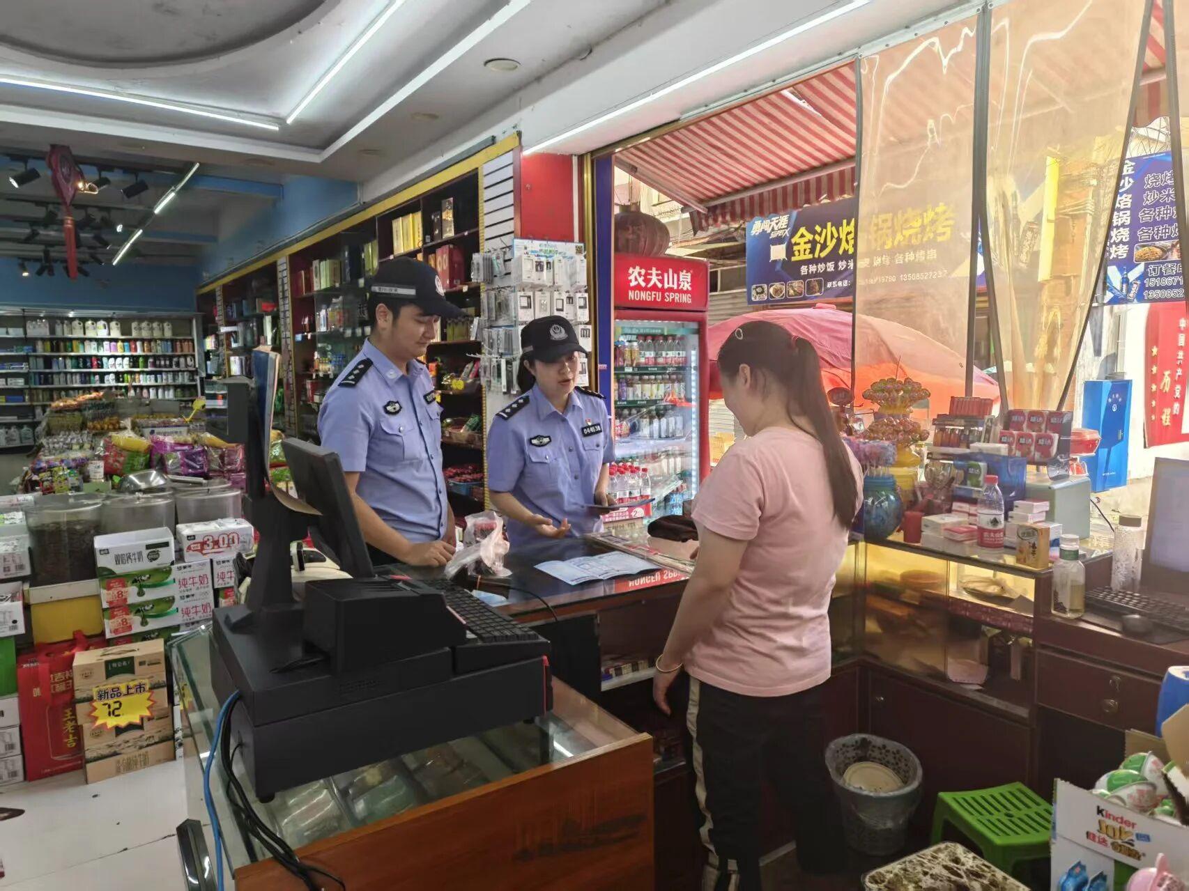 圖為民警對(duì)商戶進(jìn)行反詐知識(shí)宣傳。