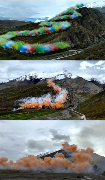 20日,始祖鳥工作人員表示,活動在科學(xué)評估和嚴(yán)格指導(dǎo)下進(jìn)行,所選用的彩色粉為生物可降解材料,符合環(huán)保標(biāo)準(zhǔn)。此前活動介紹亦顯示,項目團(tuán)隊在煙花燃放前已將牧民牲畜轉(zhuǎn)移至安全距離,并通過鹽磚引導(dǎo)鼠兔等小型動物離開燃放區(qū);燃放后立即清理殘留物,并對草甸、農(nóng)田進(jìn)行翻土與植被修復(fù)。日喀則市生態(tài)環(huán)境局江孜縣分局工作人員則介紹,此次活動在生態(tài)環(huán)境局備案,手續(xù)合規(guī),由于煙花使用的是環(huán)保材料,因此不需要進(jìn)行環(huán)境評估,鄉(xiāng)、村、縣三級政府同意即可。