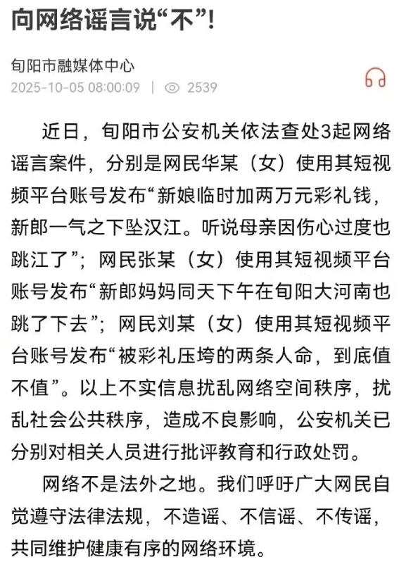 (旬陽(yáng)市融媒體中心發(fā)布對(duì)造謠者處置情況)