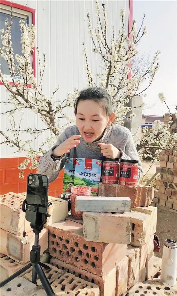 4月16日,在寧夏回族自治區(qū)吳忠市紅寺堡區(qū)大河鄉(xiāng)大河村的一處農(nóng)家小院里,薛宏偉坐在直播鏡頭前熟練地介紹枸杞,另一邊老板娘潘紅偉忙碌在電腦前,有條不紊地梳理接單。