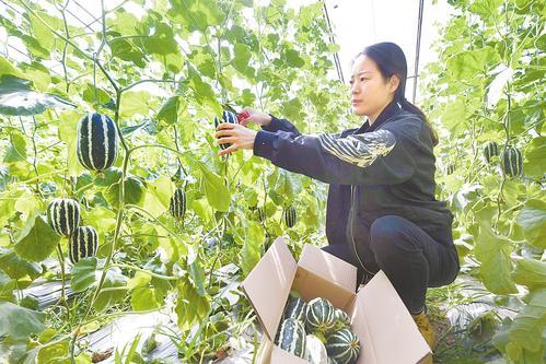 近日,游客在安次區(qū)仇莊鎮(zhèn)宋王務(wù)村甜瓜大棚里采摘甜瓜。 通訊員 楊佳琳 攝