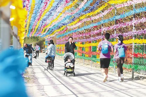 日前,游客在香河縣蔣辛屯鎮(zhèn)北李莊村水岸潮白景區(qū)內(nèi)散步游玩。 通訊員 韓博陽(yáng) 攝