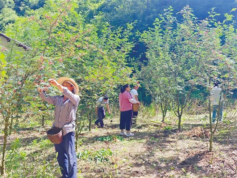 “近年來,為了扶持我們村發(fā)展花椒產(chǎn)業(yè),縣上給我們提供花椒苗,鎮(zhèn)政府每年給我們送有機肥。目前,我們村花椒種植面積1200余畝,不僅吸納鄰村和本村勞動力50余人通過務(wù)工實現(xiàn)增收,而且還帶動115戶群眾發(fā)展花椒種植,年戶均增收4000余元?!彪p建村黨支部副書記黃仁山說。
