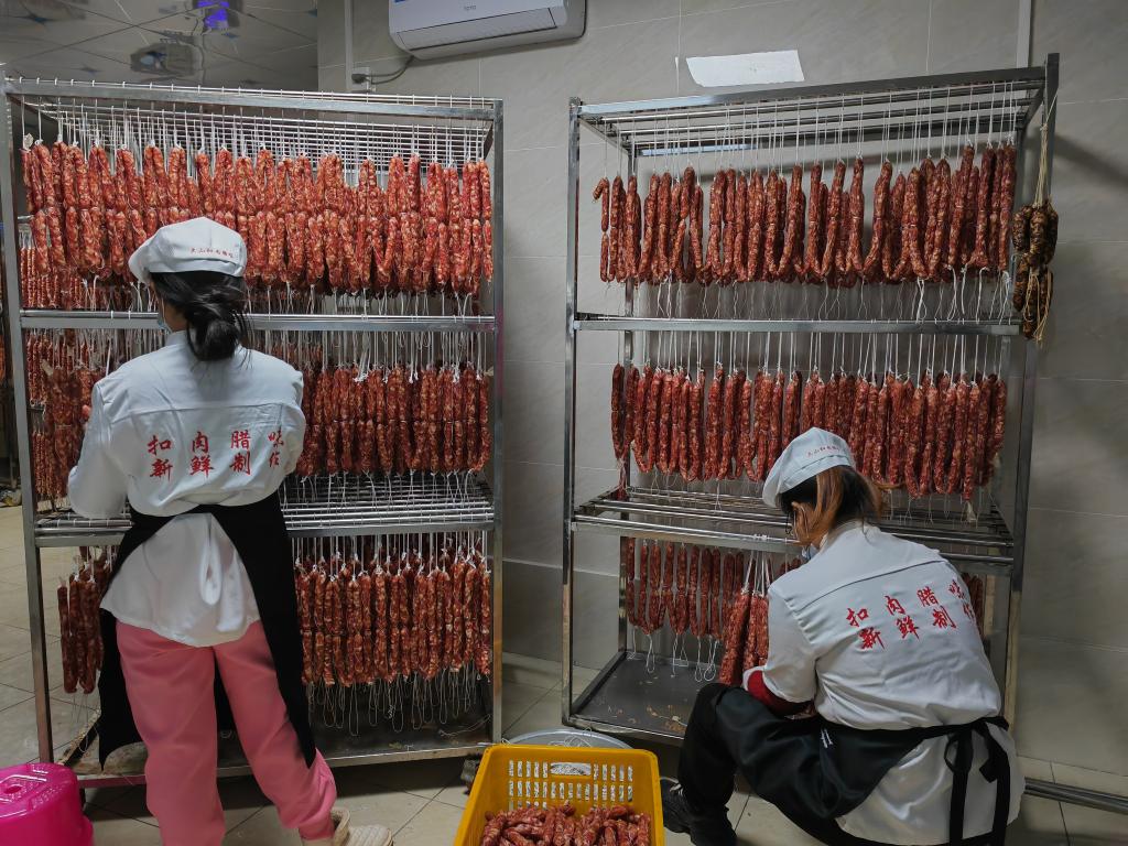 做好土特產(chǎn)文章,發(fā)展特色產(chǎn)業(yè)是實現(xiàn)鄉(xiāng)村振興的一條重要途徑。在陸川縣,當?shù)貒@國家地理標志產(chǎn)品陸川豬不斷助推村民致富增收。切割、生產(chǎn)、烘干、包裝……在位于陸川縣珊羅鎮(zhèn)大山村的玉林市浚淇食品有限公司,工人們正忙著生產(chǎn)和包裝臘腸。“年關(guān)將至,臘肉、臘腸、扣肉的生產(chǎn)也迎來旺季?!惫矩撠熑肆簻颊f。
