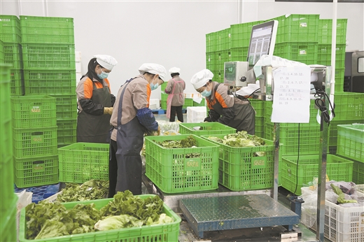 收購企業(yè)員工對蔬菜進(jìn)行分揀、打包