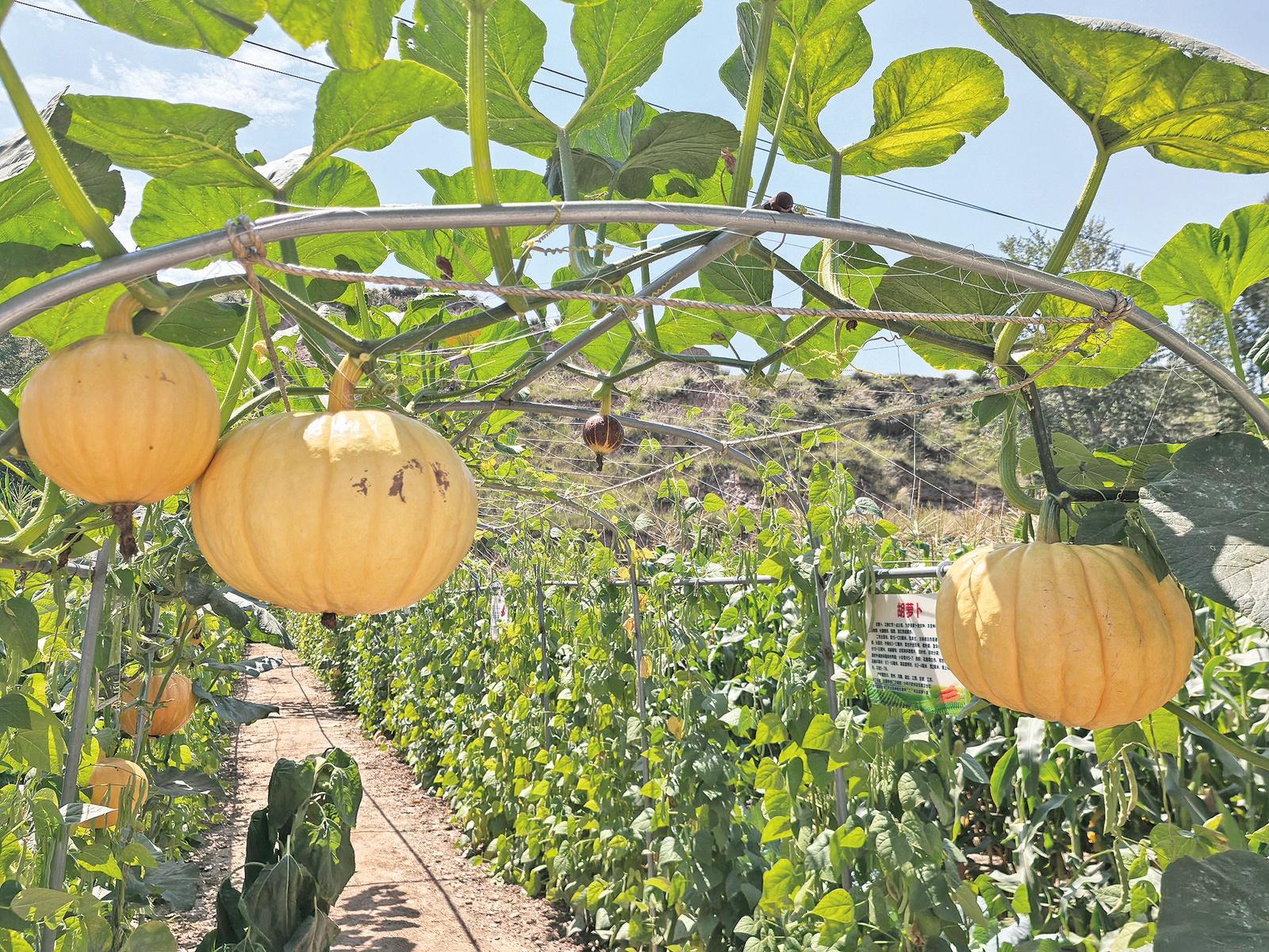 在技術(shù)人員指導(dǎo)下生長出的大南瓜