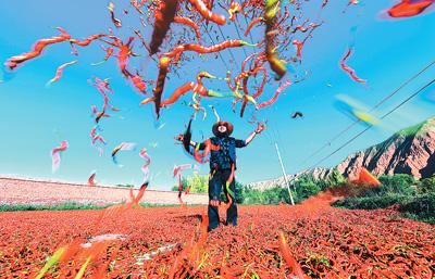 青海省海東市循化撒拉族自治縣清水鄉(xiāng)多灘地、谷地,全年日照充足,出產(chǎn)的線(xiàn)辣椒色澤鮮紅,“香而不辣,口味獨(dú)特”,受到大眾喜愛(ài)。正是豐收時(shí)節(jié),清水鄉(xiāng)家家戶(hù)戶(hù)在房前屋后晾曬線(xiàn)辣椒,構(gòu)成一幅喜人的秋日?qǐng)D景。
