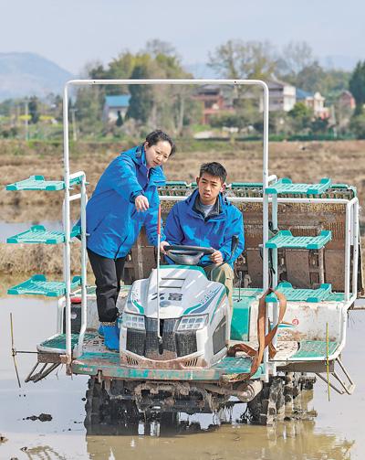 春分時節(jié),重慶市梁平區(qū)的種糧大戶張強駕駛插秧機在田間穿梭,所到之處,嫩綠的秧苗整齊插入田里?!叭ツ暝凇镩g學校’學的本事,讓我省了不少錢!”他拍了拍沾著泥點的褲腿,黝黑的臉上綻開笑容。