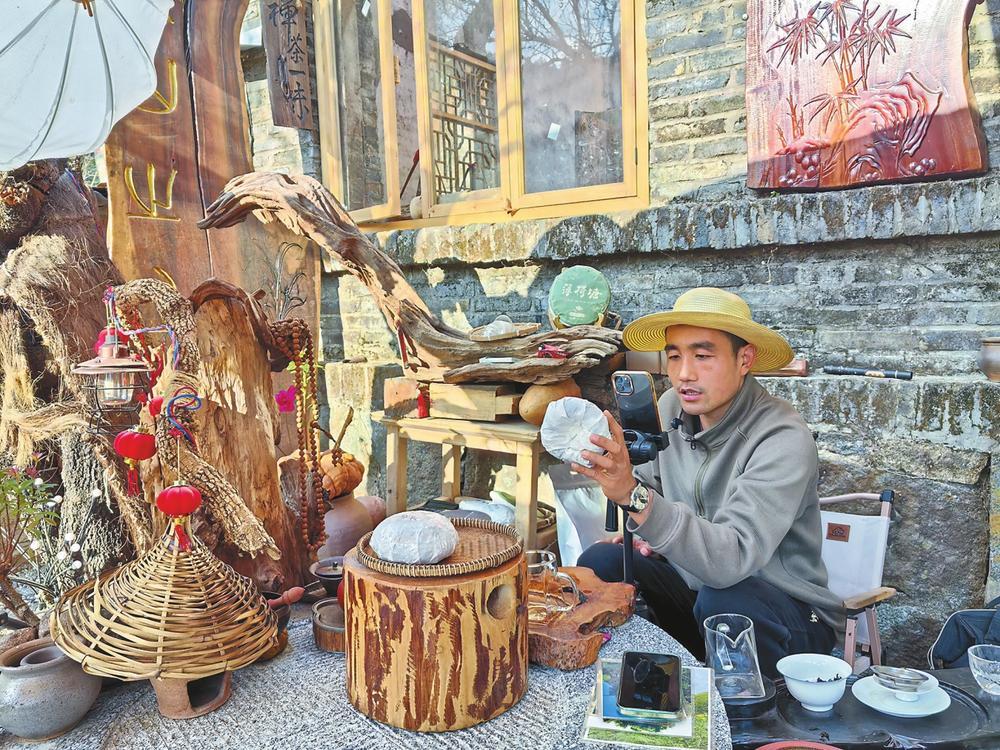 大乖來(lái)自陜西西安,是旅游愛(ài)好者。2022年,他通過(guò)網(wǎng)友介紹來(lái)到白云村,被這里“遠(yuǎn)上寒山石徑斜,白云生處有人家”的詩(shī)意景致吸引,便決定旅居于此?!斑@里不僅風(fēng)景如畫(huà),還有茶葉、核桃、蜂蜜等土特產(chǎn)。我是主播,既然住下來(lái),就想幫村民通過(guò)直播增收。”大乖的想法得到村“兩委”的支持。他與團(tuán)隊(duì)一起修繕村內(nèi)的“禪茶小院”,用于短視頻拍攝,又把老電站舊址改造成簡(jiǎn)易直播間,讓古樸的村莊刮起一場(chǎng)“電商風(fēng)暴”。
