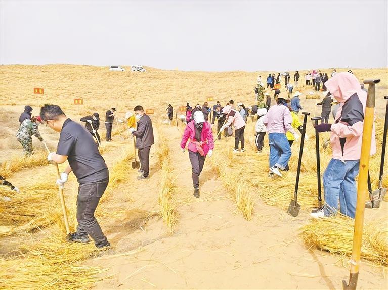 協(xié)同治理的突破,激活了多元力量的參與。平羅縣依托林長(zhǎng)制搭建的協(xié)同平臺(tái),將各級(jí)林長(zhǎng)責(zé)任區(qū)與治沙任務(wù)精準(zhǔn)對(duì)接,通過(guò)建立黨建帶林建工作機(jī)制,引進(jìn)社會(huì)資本參與后期養(yǎng)護(hù)管理?!?月25日,金融系統(tǒng)的研學(xué)團(tuán)隊(duì)來(lái)這和我們一起扎草方格、種樹(shù)苗,大家干得熱火朝天!此外,青年志愿者隊(duì)伍也絡(luò)繹不絕……”王建保說(shuō),“林長(zhǎng)制就像一根‘指揮棒’,將各方力量擰成一股繩,讓治沙從‘單打獨(dú)斗’升級(jí)為全社會(huì)協(xié)同作戰(zhàn)。”