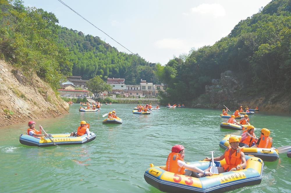 一聲哨響,數(shù)百只游艇從上游順流而下,游客們帶著水槍?zhuān)蚱鹆怂?。憑著這條水道打造的“神搖漂流”旅游項(xiàng)目如今已成為平和旅游的一張名片,年接待游客超過(guò)10萬(wàn)人次。