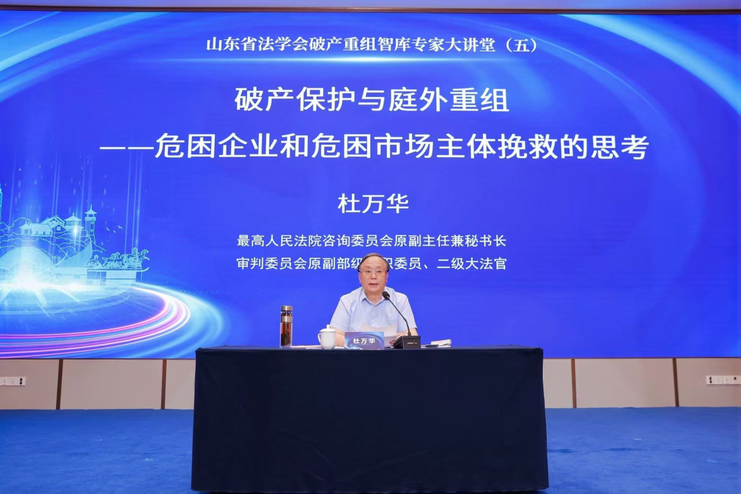 最高人民法院咨詢委員會原副主任兼秘書長、審判委員會原副部級專職委員、二級大法官杜萬華作《破產(chǎn)保護(hù)與庭外重組——危困企業(yè)和危困市場主體挽救的思考》的主旨發(fā)言,以黨的二十屆三中全會為何要將破產(chǎn)制度確立為市場經(jīng)濟(jì)基礎(chǔ)制度的深層原因?yàn)榍腥朦c(diǎn),進(jìn)而闡釋市場主體活動是市場經(jīng)濟(jì)發(fā)展的核心動力,強(qiáng)調(diào)受經(jīng)濟(jì)周期影響,破產(chǎn)是市場經(jīng)濟(jì)中的常態(tài)化現(xiàn)象。針對“談破色變”的認(rèn)知誤區(qū),主張應(yīng)以積極、理性的態(tài)度正視破產(chǎn)制度。他詳細(xì)論述了我國破產(chǎn)制度的人民性性質(zhì)及保護(hù)性、救濟(jì)性、治理性等特征;同時,對庭外重組進(jìn)行詳細(xì)論述,并解讀了為什么要搞庭外重組、如何搞好庭外重組,應(yīng)將庭外重組工作與司法審判、管理人工作等做好協(xié)同、銜接,提出下一步的工作是建立司法重整、司法和解、破產(chǎn)清算工作機(jī)制,從而推動整體制度的完善。他憑借深厚的司法實(shí)踐積淀,在深入解析破產(chǎn)保護(hù)與庭外重組協(xié)同價值的同時,更精準(zhǔn)剖析了危困企業(yè)及市場主體的系統(tǒng)性挽救路徑。