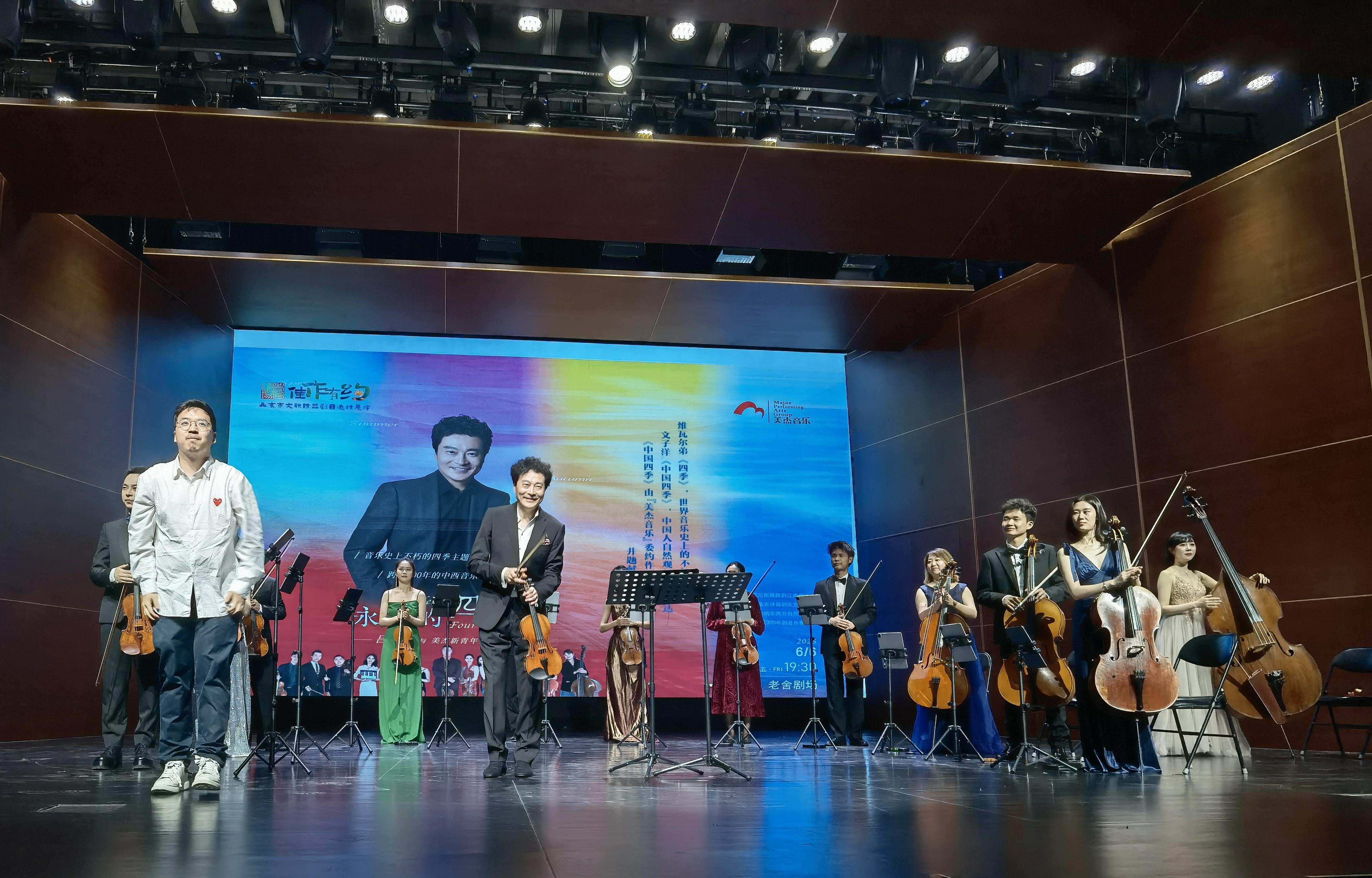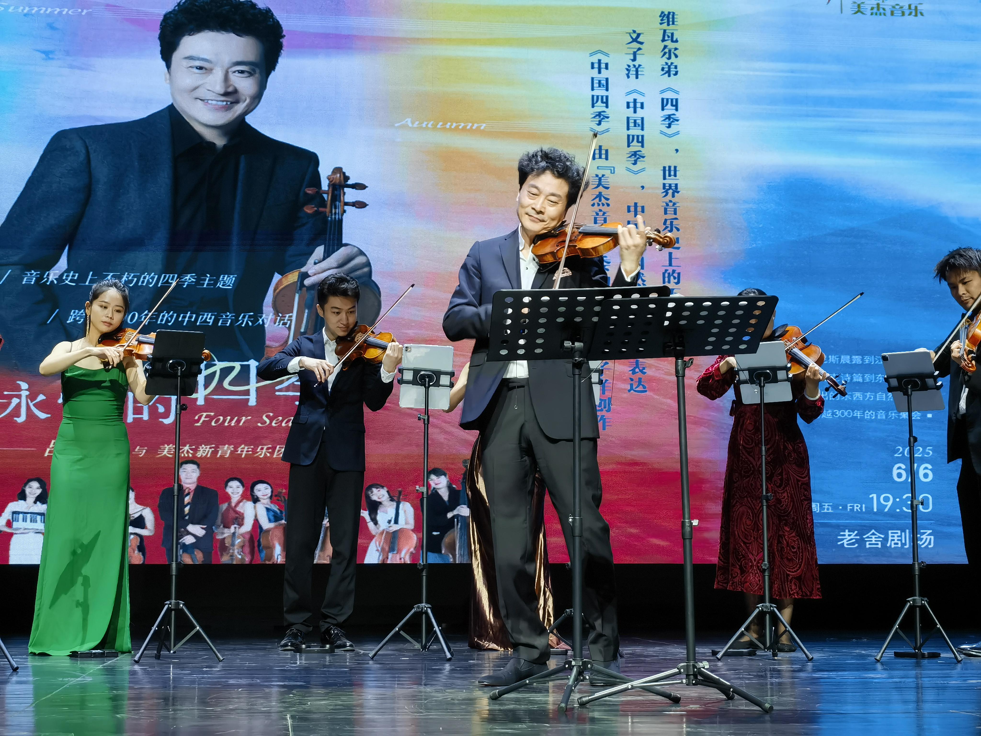 “和著飛快不息的音樂節(jié)拍,四季蹁躚而來,飄然而去——色彩、旋律、芳香匯成不竭的瀑布傾瀉而下,時刻在豐沛的歡樂中飛濺、墜落、消亡”。這是印度詩人泰戈爾在其獲得諾貝爾文學(xué)獎的詩集《吉檀迦利》中發(fā)出的感喟。6月6日,適逢二十四節(jié)氣里唯一直接指導(dǎo)農(nóng)事活動的芒種——“忙種”期間,筆者在北京老舍劇場觀賞《永恒的四季——呂思清與美杰新青年樂團音樂會》,對詩人之榮枯慨嘆越發(fā)感同身受。是的,和著節(jié)拍,四季蹁躚若何,泰戈爾的詩意,或許是對足以代言中國新聲音活力前沿的“美杰”版《四季》最好的詮釋。