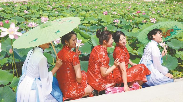 游客在荷花節(jié)上打卡拍照。