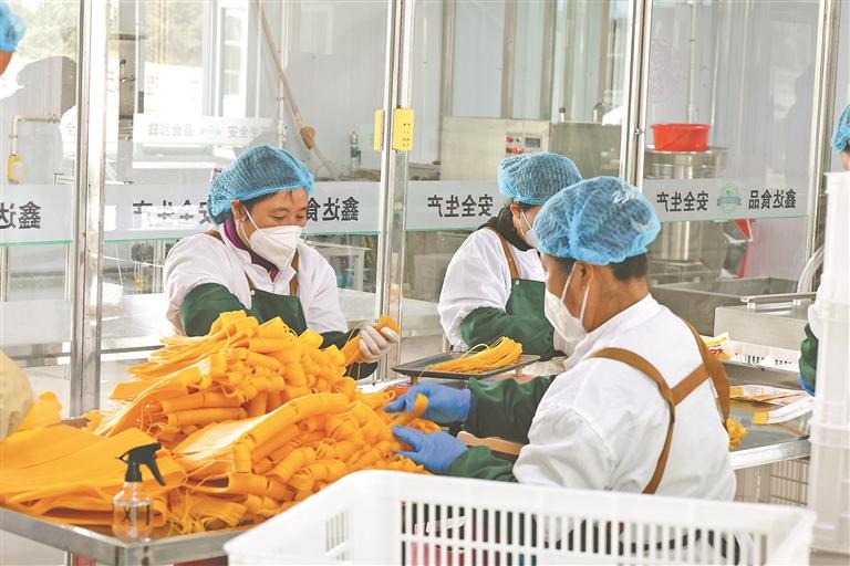 村民在村辦面條廠務(wù)工。