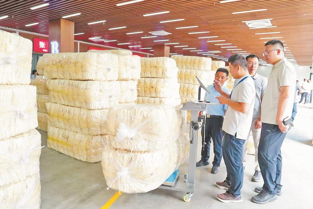 江西撫州的菇農(nóng)吳參才正把竹蓀袋往磅上搬:“以前我們各賣各的,互相之間不通氣,竹蓀價格被越壓越低。聽說這里能集中交易,今天特意拉來150斤試試,要是價格公道,以后我會常來。”