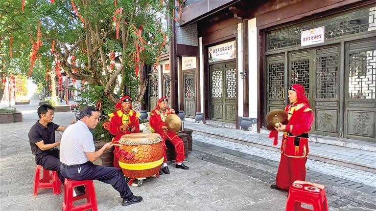 8月1日9時(shí),陜西省安康市平利縣長安鎮(zhèn)文共體分中心前的廣場上鑼鼓震天,熱鬧非凡。平利縣安之美文化傳媒有限公司負(fù)責(zé)人劉海和帶領(lǐng)幾名村民排練花鼓戲,贏得現(xiàn)場觀眾陣陣掌聲。