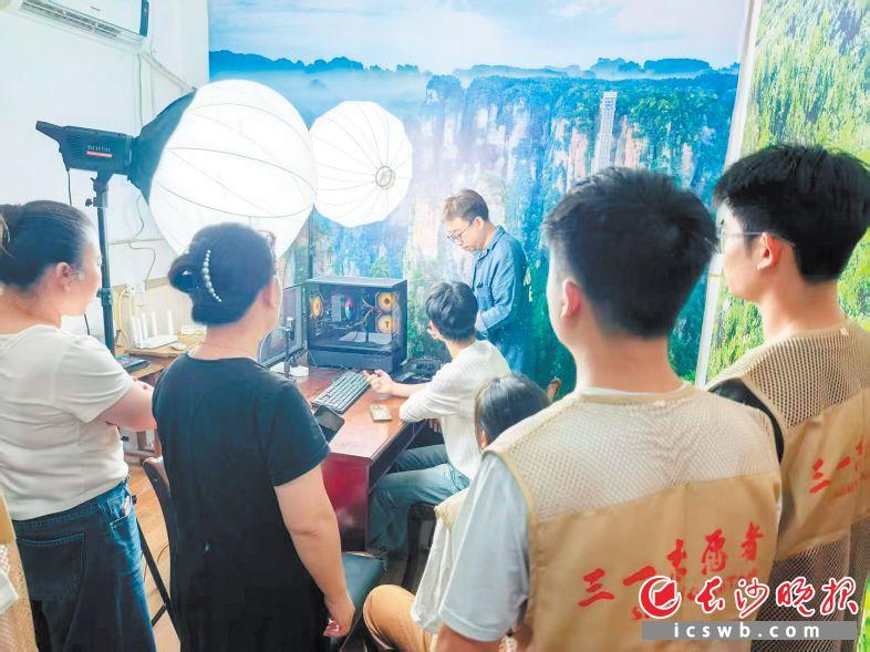 湖南三一工業(yè)職業(yè)技術(shù)學(xué)院“三川星火”志愿服務(wù)團(tuán)邀請(qǐng)村民觀(guān)摩并現(xiàn)場(chǎng)指導(dǎo)“直播帶貨”。