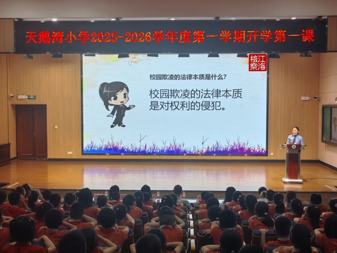 9月,新學(xué)期如約而至,廣東省江門市江海區(qū)人民檢察院“藍(lán)色港灣”未成年人檢察工作品牌再次溫暖啟航,持續(xù)發(fā)揮檢察力量,守護(hù)青春成長(zhǎng)。法治副校長(zhǎng)與青年法治宣講團(tuán)成員相繼走進(jìn)滘頭小學(xué)、天鵝灣小學(xué)、禮樂(lè)中心小學(xué)、新聯(lián)小學(xué)、陽(yáng)光學(xué)校及江門市工貿(mào)職業(yè)技術(shù)學(xué)校,為孩子們量身打造了一堂堂生動(dòng)而深刻的“開(kāi)學(xué)第一課”,用專業(yè)的法律知識(shí)和司法溫度,為青春之路筑起堅(jiān)實(shí)的法治屏障。