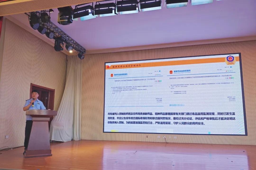 活動中,葫蘆島市市場監(jiān)督管理局楊家杖子分局工作人員王啟浩通過PPT演示、發(fā)放宣傳冊等形式,用通俗易懂的語言對麻醉藥品和精神藥品進行了詳細介紹,著重強調了過量使用麻精類藥品會對身體和心理產生危害,輕則使人成癮、失控,誘發(fā)焦慮抑郁,重則導致暴力行為甚至死亡,非醫(yī)療目的的濫用麻精藥品即是吸毒違法行為,告誡同學們千萬不要越過法律紅線。