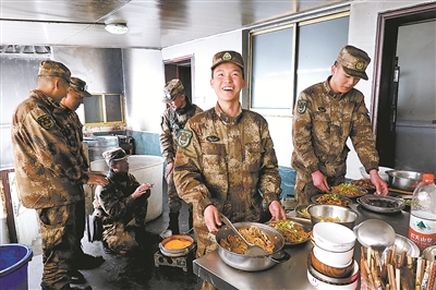 戰(zhàn)士夏夢鑫兼任哨所的“大廚”,他喜歡和官兵交流做各地的家鄉(xiāng)菜,把哨所廚房變成了一個融合東西南北中菜肴的“烹飪學(xué)?!薄?/p>