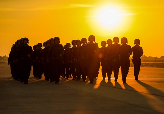 圖為2019年7月,空軍”模范轟炸機大隊“飛行員走向訓練場。賁道春 攝