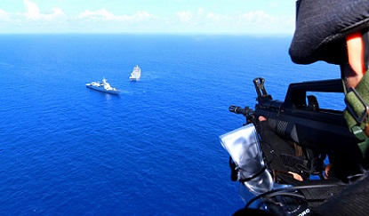 法制網(wǎng)訊  通訊員江山  經(jīng)過連續(xù)多天航行,海軍第35批護(hù)航編隊(duì)航經(jīng)宮古海峽、巴士海峽駛?cè)胛覈仙澈S颉?月2日,編隊(duì)組織太原艦、荊州艦和巢湖艦在南海某海域開展武力營救遭劫持船舶演練、艦機(jī)協(xié)同反海盜和實(shí)際使用武器等多項(xiàng)針對(duì)性訓(xùn)練,鞏固編隊(duì)?wèi)?zhàn)斗力,提升遂行護(hù)航任務(wù)的能力。
