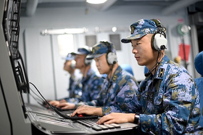5月2日,中國海軍第35批護(hù)航編隊(duì)官兵在操控臺(tái)上發(fā)出指令。江山 攝