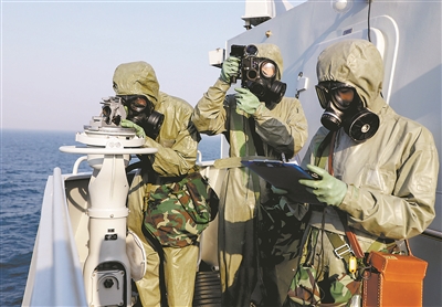 官兵在全防護狀態(tài)下進行實戰(zhàn)化訓練。