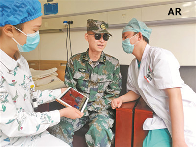 上圖:陸軍軍醫(yī)大學(xué)第一附屬醫(yī)院醫(yī)護(hù)人員與杜富國(guó)一起收聽兩會(huì)新聞。馬璽君 攝