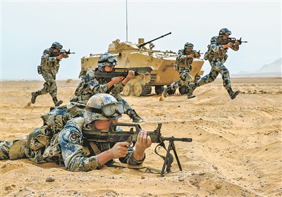 6月1日,空降兵某旅組織的一場實(shí)戰(zhàn)背景下空降機(jī)步營戰(zhàn)術(shù)演練,在西北大漠腹地激烈進(jìn)行。面對復(fù)雜“敵情”,營指揮員沉著研判態(tài)勢,果斷調(diào)整兵力部署,指揮部隊(duì)采取靈活戰(zhàn)術(shù),向“敵”陣地發(fā)起突擊。