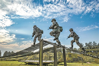 圖④:官兵開展通過軟橋訓(xùn)練。