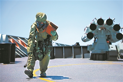 “戰(zhàn)斗警報!”編隊剛剛離港,一場以處置突發(fā)“敵情”為背景的實戰(zhàn)化演練隨即打響,官兵們迅速進入戰(zhàn)斗狀態(tài)。作戰(zhàn)室內(nèi),鍵盤聲不絕于耳,口令聲此起彼伏。各艦迅速調(diào)整為防御隊形,對來襲“導(dǎo)彈”和“敵”水面艦艇進行防御打擊。霎時,訓(xùn)練海區(qū)炮火紛飛、硝煙彌漫。