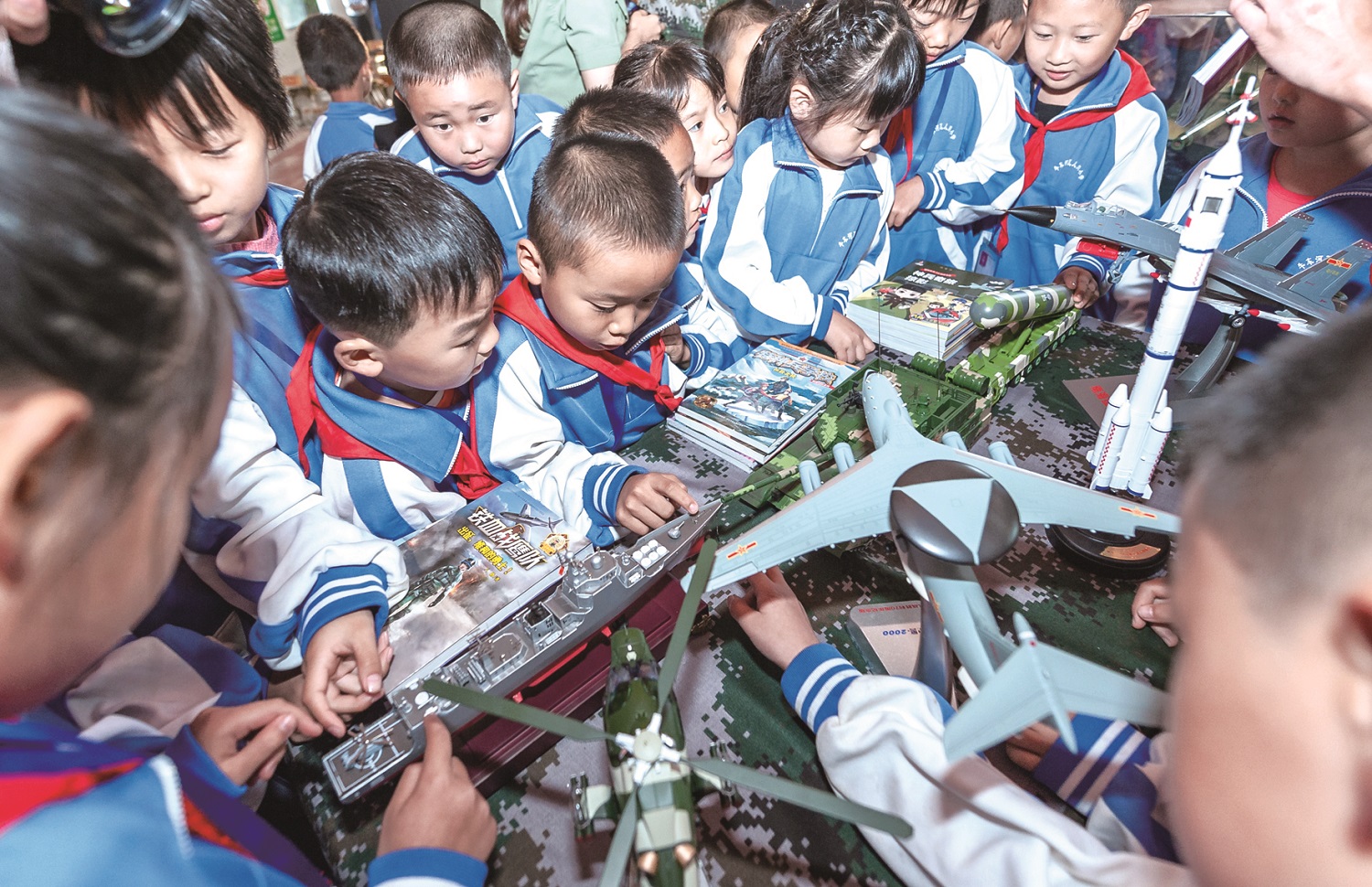 圖為瓦兒崗小學(xué)學(xué)生對(duì)贈(zèng)送的武器裝備模型愛(ài)不釋手。彭三珊 攝