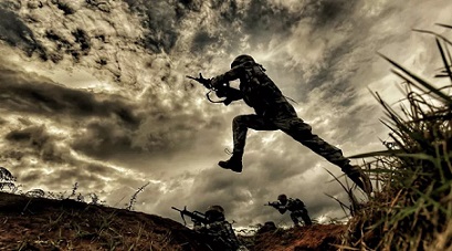 擔負尖刀任務(wù)的一大隊機動一中隊剛出營地就遭遇小股“敵人”襲擾,中隊長王學(xué)海一聲令下,官兵們迅速成多路戰(zhàn)斗隊形,利用夜幕掩護前出接敵,展開激烈交火。短短10分鐘,王學(xué)海連續(xù)下達20余組戰(zhàn)斗命令,成功抵御了“藍軍”襲擾。