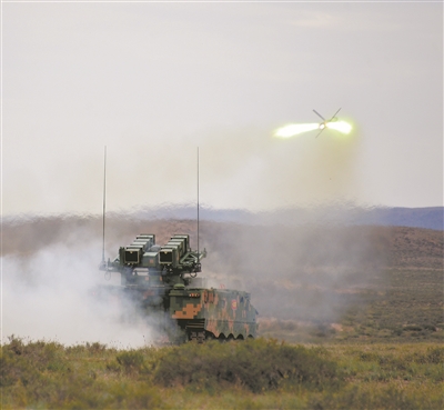 另一作戰(zhàn)地域,面對(duì)藍(lán)方坦克火力點(diǎn)猛烈打擊,紅方進(jìn)攻受阻。“01,我是07,請(qǐng)求支援!”話音剛落,導(dǎo)彈呼嘯而出,直撲“敵”坦克火力點(diǎn)。據(jù)悉,這是該旅剛列裝不久的某新型反坦克導(dǎo)彈武器系統(tǒng)首次參演,即取得4發(fā)4中的佳績。