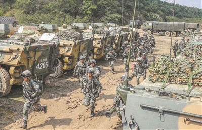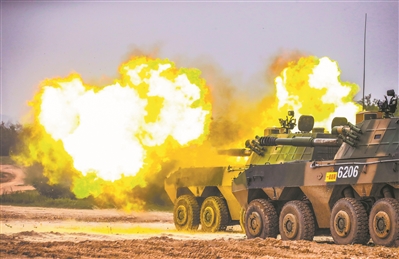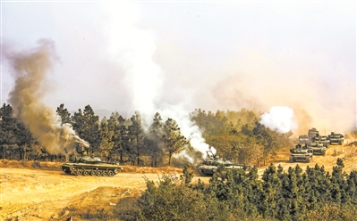 紅方偵察分隊(duì)抵近藍(lán)方前沿陣地,迅速傳回“敵情”。指揮所果斷下令,指揮炮兵分隊(duì)、電子對(duì)抗分隊(duì)、陸航火力和步兵突擊車攻擊群打出一套“組合拳”,對(duì)藍(lán)方陣地實(shí)施猛烈攻擊?;鹆Υ驌暨^(guò)后,藍(lán)方殘余力量依托有利地形負(fù)隅頑抗。抓住時(shí)機(jī),紅方前沿突擊隊(duì)順勢(shì)展開強(qiáng)攻,在藍(lán)方火力封鎖區(qū)“撕”開一個(gè)突破口,成功占領(lǐng)陣地。