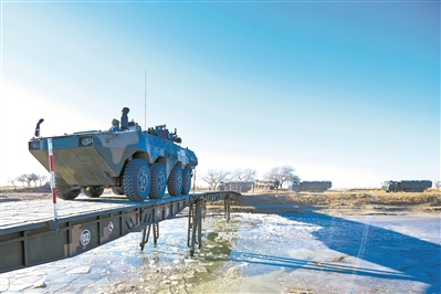 “前方橋梁被毀,工兵迅速前出架橋!”遠(yuǎn)程機(jī)動途中,該旅運動保障隊接到上級“敵”情通報后,迅速調(diào)集兵力在某水域展開架橋作業(yè)。工程偵察、破冰作業(yè)、標(biāo)樁定線……在后方火力掩護(hù)下,工兵連快速架起一座重型機(jī)械化橋,保障后續(xù)部隊車輛裝備順利抵達(dá)作戰(zhàn)地域。