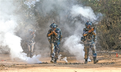 2月中旬,海軍陸戰(zhàn)隊(duì)某旅組織開(kāi)展班戰(zhàn)術(shù)演練。翻山嶺、越溝壑、穿叢林……參訓(xùn)班組在野外陌生條件下連貫完成協(xié)同搜索、情報(bào)偵察和滲透破襲等行動(dòng)。