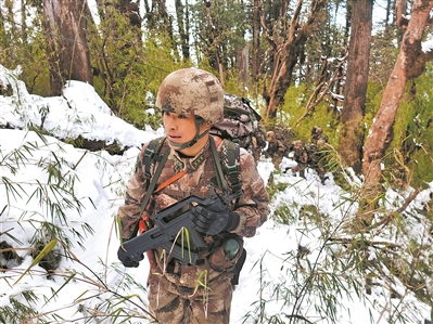 團(tuán)長(zhǎng)侯云走在隊(duì)伍的最前頭。任現(xiàn)職前,他曾兩次帶隊(duì)參加國(guó)際軍事比賽,征服過歐洲最高峰厄爾普魯士山,對(duì)登山很有經(jīng)驗(yàn)。當(dāng)團(tuán)長(zhǎng)后,每次參加武裝巡邏,他都在前面開路。