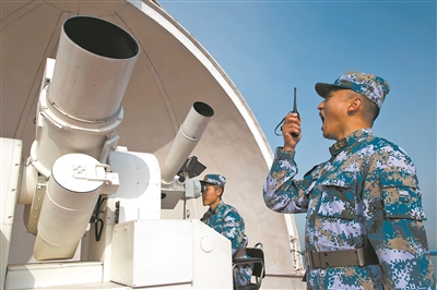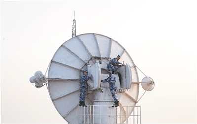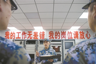 抵達(dá)山頂后,一場測控訓(xùn)練緊張展開,各種口令聲響徹海天,官兵斗志昂揚、全心投入。