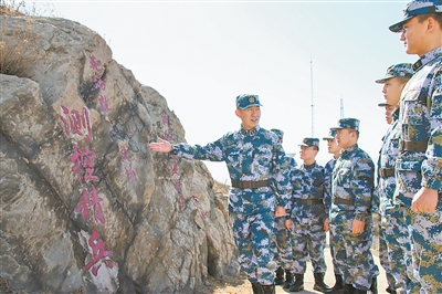 “我覺得這些冰冷的石頭仿佛有了滾燙的生命,無形中給我們帶來力量。”上島不久的列兵賈義照,聽了老兵的介紹后深有感觸。