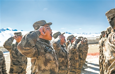 第三天,車(chē)隊(duì)盤(pán)山而上,似在云海間穿行。駛過(guò)數(shù)不清的彎道,到達(dá)海拔5200多米的界山達(dá)坂后,官兵進(jìn)行短暫休整。費(fèi)騰喘著粗氣,爬上界山之巔。俯瞰錦繡邊關(guān),他的胸中豪情涌動(dòng):“70多年前,爺爺抗美援朝、保家衛(wèi)國(guó);70多年后,我來(lái)到雪域高原、衛(wèi)國(guó)戍邊?!?/p>