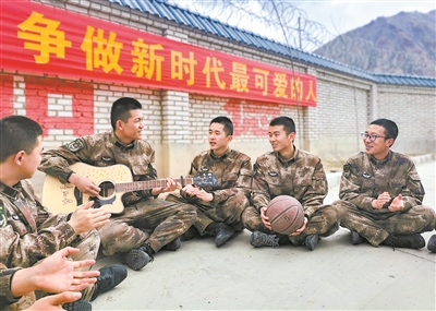 休息時(shí)間,費(fèi)騰為戰(zhàn)友們彈奏吉他。